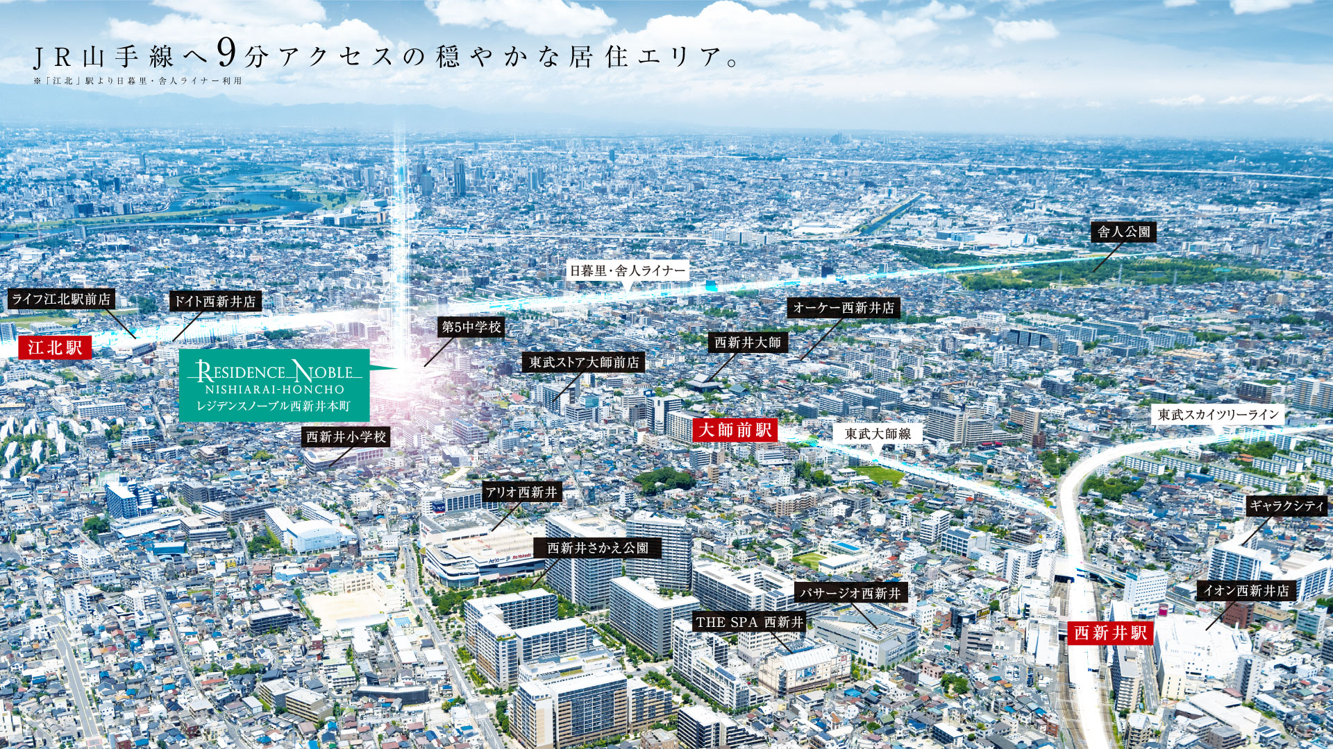 2駅2路線徒歩10分圏の新築分譲マンション「レジデンスノーブル西新井本町」